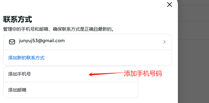 在“联系方式”部分,你会看到“添加电话号码”(Add Phone Number)按钮。点击该按钮,准备绑定新的手机号。在弹出的框中,输入你想要添加的手机号,然后点击“继续”。