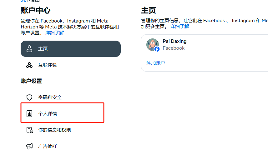 在左侧菜单中进入 账户中心 → “个人信息”(Personal Information)。